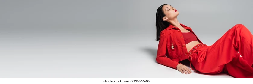 brunette-asian-woman-red-fashionable-260nw-2235546605